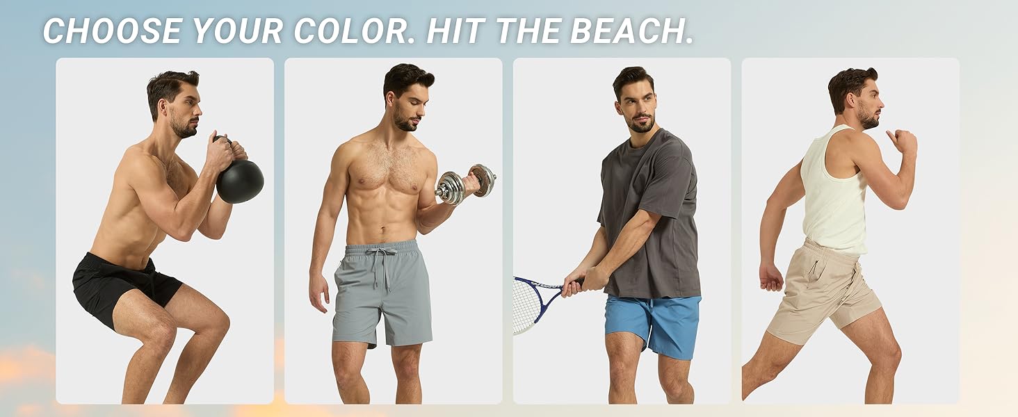 【Comfy & Quick Dry Fabric】This men swim trunks 7 inch is made from 92% polyester and 8% spandex. The lightweight, sweat-wicking, quick-drying material ensures rapid drying and stays cool during your workout routine. Distinguished four-way stretch and high-quality stitching cater to any intensity of training, offering ultimate flexibility and durability - the optimal choice on your fitness journey.