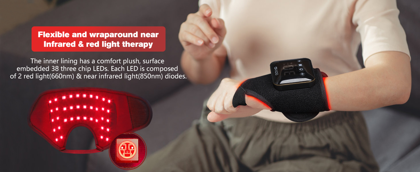 【Multiwavelength Design】3 in 1 flat lamp beads offer maximum comfort. 152 pcs 660nm red lights for hand & wrist support circulation and promote relaxation. 38 pcs 850nm Near-Infrared LEDs with strong tissue-penetrating ability, suitable for wrist relaxation. Relieve fatigue from repetitive tasks (typing, gaming) or sports strain.