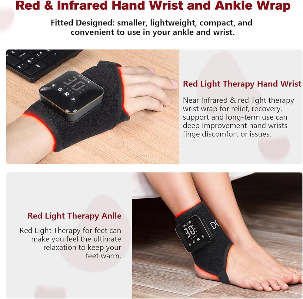 【Suitable for Wrist & Ankle Joints】 Cordless Portable Rechargeable 4000mAh red & infrared wrist wrap combines gentle heating & red & near infrared therapy to support circulation. May help ease muscle tension, and promote relaxation. THREE LIGHTING MODE, FIVE LIGHT INTENSITY, TEN PULSING RATE, 5-30 MINS SET.