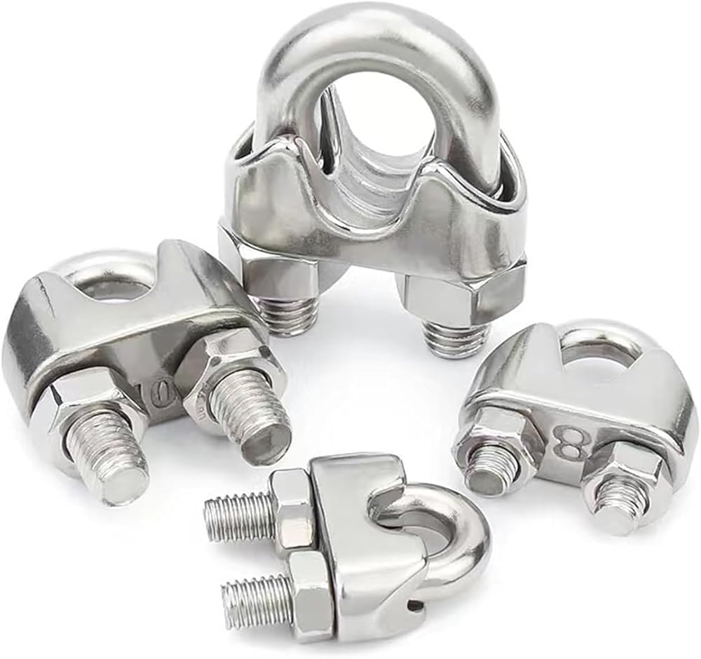 U-Shaped Wire Rope Clips: Couple together two lengths of wire rope, or to form an eye or loop on wire rope.