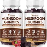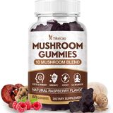 Mushroom Gummies for Adults, 10 Blend Mushroom Supplement with Lions Mane, Cordyceps, Reishi, Chaga and Turkey Tail for Focus and Energy, Raspberry Flavor, 60 Count