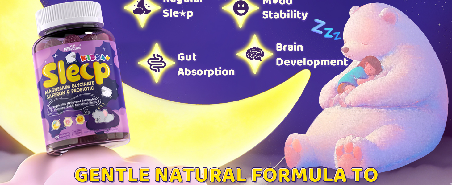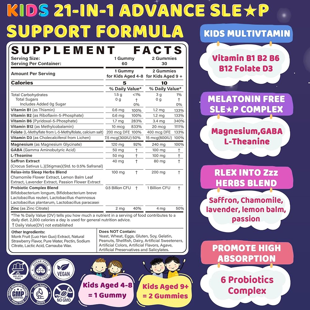▶Melatonin Free Kids Sleep Acid Gummies Designed for Children at Night◀ Specially crafted for children with active minds, night restlessness, or difficulty winding down. This chewable sleep gummies combines magnesium glycinate, L-theanine, GABA, methylated B vitamins, probiotics and gentle relaxation herbs blend - carefully formulated to address the unique sleep needs of growing children without melatonin