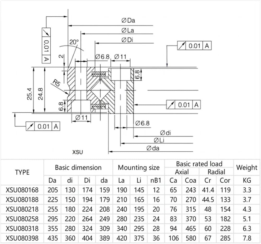 1PCS XSU080168 130X205X25.4 Cross Roller Bearing