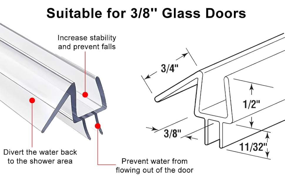 Scope of application: Fameless shower door bottom seal can perfectly fit 3/8 inch (10 mm) thick glass. Please measure the glass thickness and bottom gap before purchasing to avoid trouble due to inapplicability.