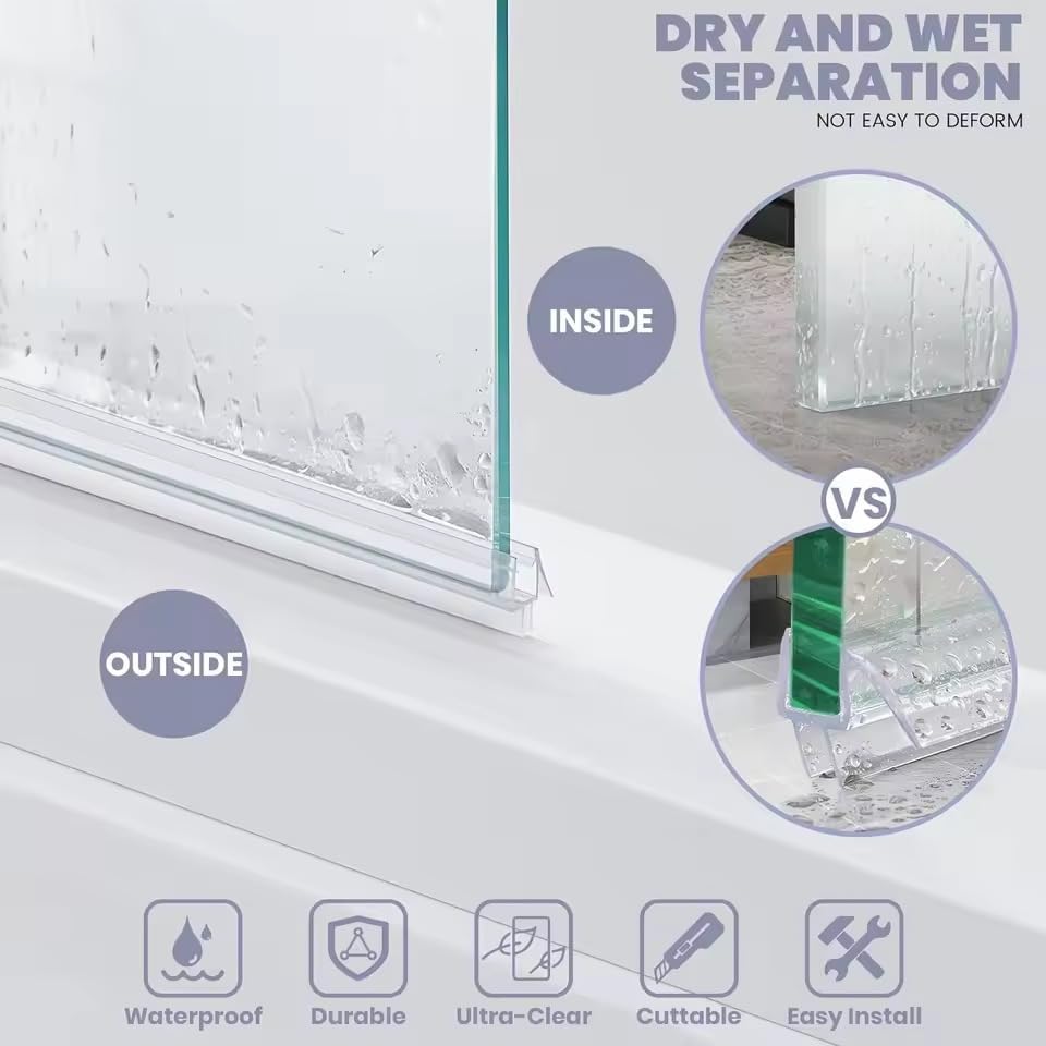 Wide application: The wing at the bottom of the seal is soft and fits tightly with the 45° inclined sink on the side of the seal to prevent water from dripping onto the shower floor and keep the bathroom dry and clean. It can be widely used in shower doors, sliding doors, glass doors, door bottoms, etc.