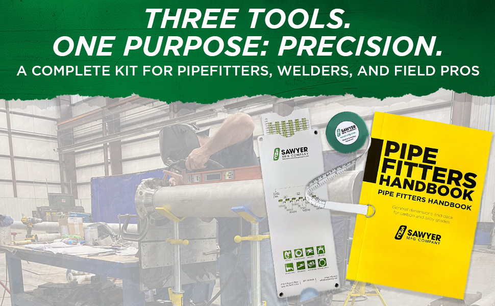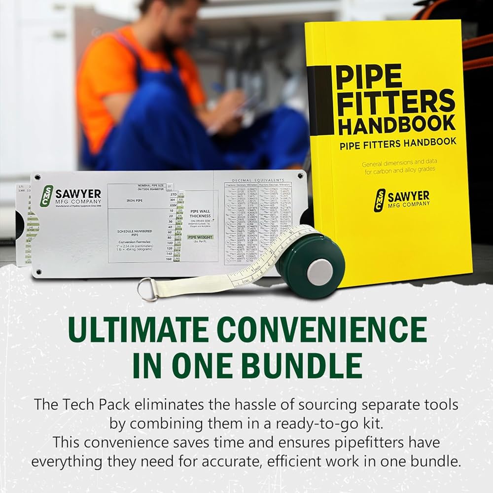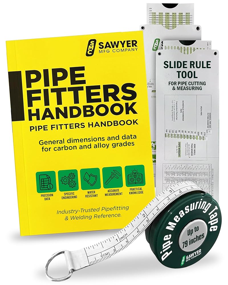 Essential Tools for Pipefitting Projects - This bundle equips professionals with the crucial tools needed for pipe fitting, welding, and precise measurements. The handbook, tape, and slide rule collectively enhance accuracy and efficiency, ensuring every job is done right.