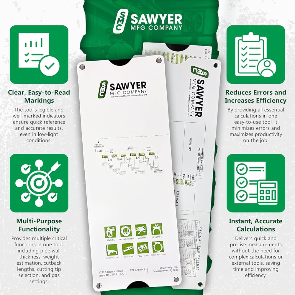 Versatile Slide Rule Tool - Designed for seamless pipe cutting and measuring, this slide rule helps determine pipe thickness, weight, and cutback lengths. Its adjustable sliding scale simplifies complex calculations, making it ideal for welding tasks with oxygen and acetylene settings.