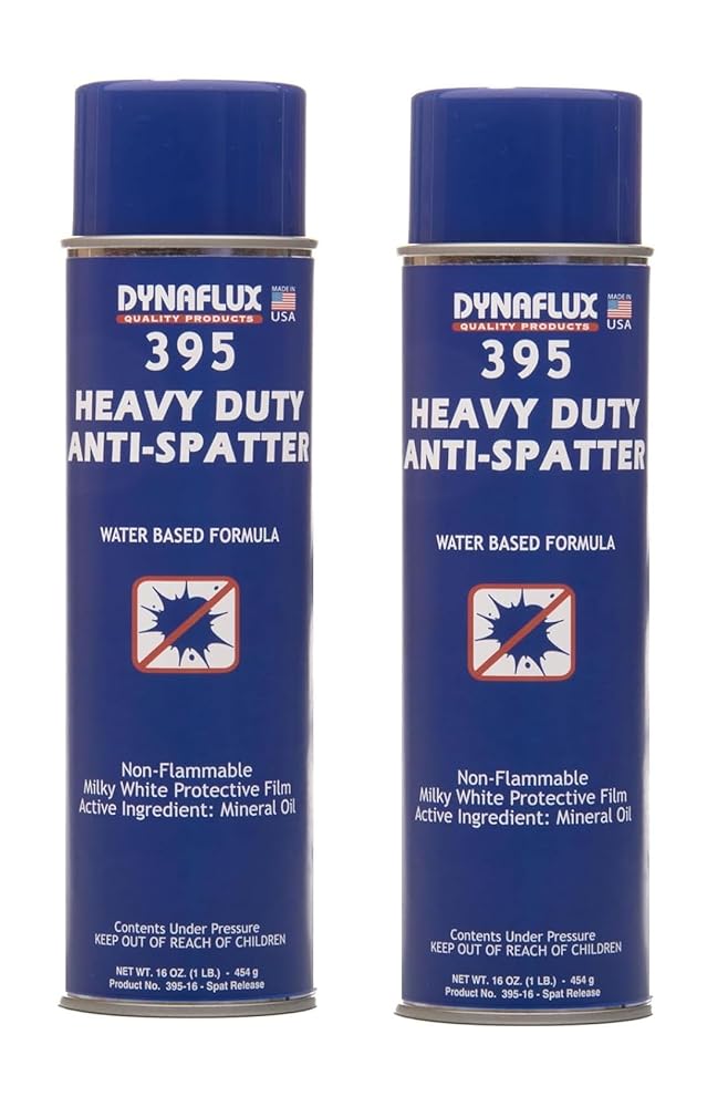 The Dynaflux 395-16 Spat Release Silicone-Free Mineral Emulsion Anti-Spatter (2-Pack) provides safe, non-flammable, and effective protection for all welding applications. Formulated as a silicone-free mineral emulsion, it prevents welding spatter from adhering to nozzles, tips, jigs, fixtures, and workpieces — including stainless steel. Each 16 oz aerosol can delivers a thick, durable coating ideal for heavy industrial and robotic welding environments. The water- and solvent-removable film is paint-compatible, ensuring no interference with finishing or coating processes. Perfect for shops demanding a non-toxic, clean-release solution that ensures smoother welds and longer equipment life. Suggested Uses: MIG & TIG welding applications Robotic and automated welding systems Fabrication shops and assembly lines Stainless steel and alloy welding Paint and finishing operations requiring silicone-free compatibility