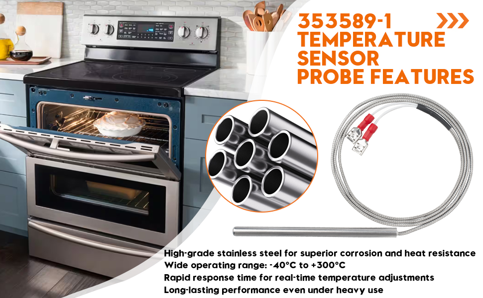 Durable & Reliable: Our 353589-1 oven sensor probe is constructed with stainless steel. It operates effectively across a wide temperature range (-40°C to +300°C) and features a fast response time for precise thermal management, ensuring your food is cooked well every time