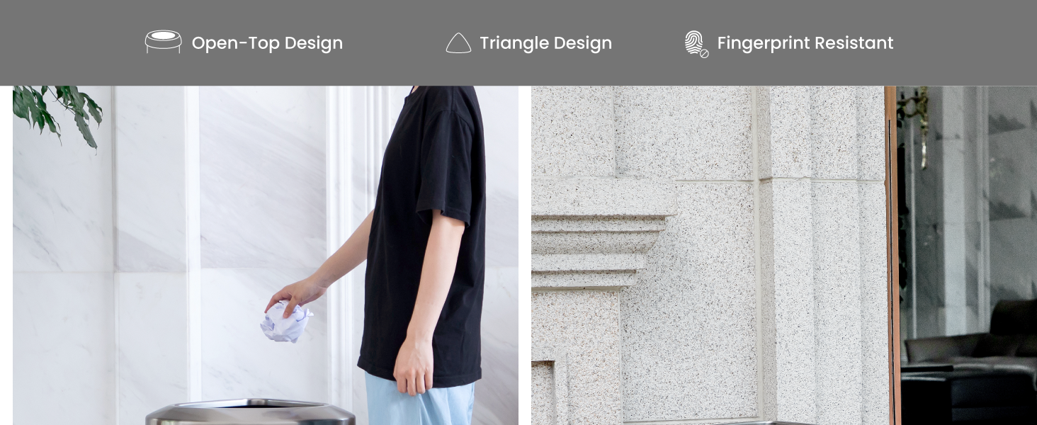 Efficient Waste Disposal: Open-top design supports quick, touch-free trash drop-in; ideal for fast-paced commercial settings.