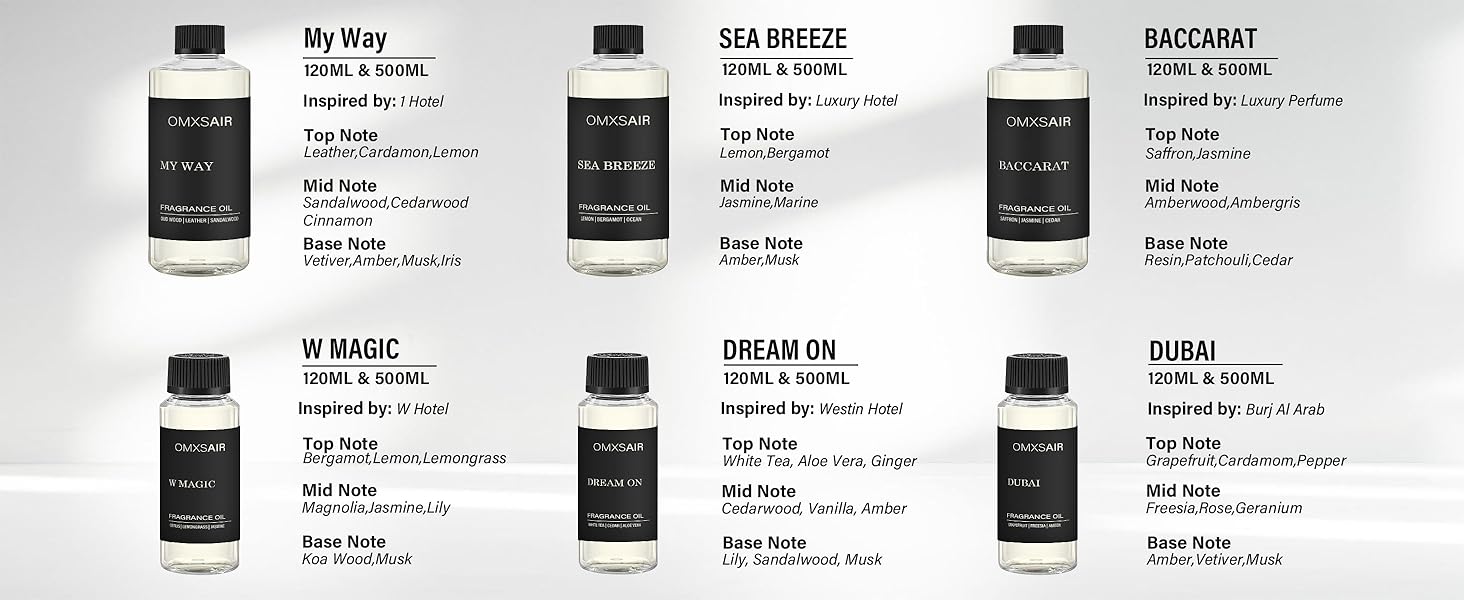Breathe deeply with confidence. OMXSAIR uses only the purest organic essential oils for diffuser applications. Our hotel scent collection of aromatherapy oils is meticulously formulated to be safe and effective, ensuring a non-toxic, luxurious sensory experience for you and your family.