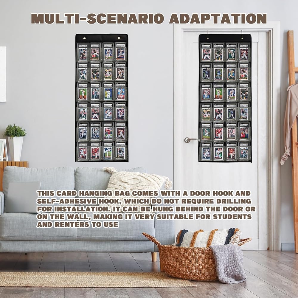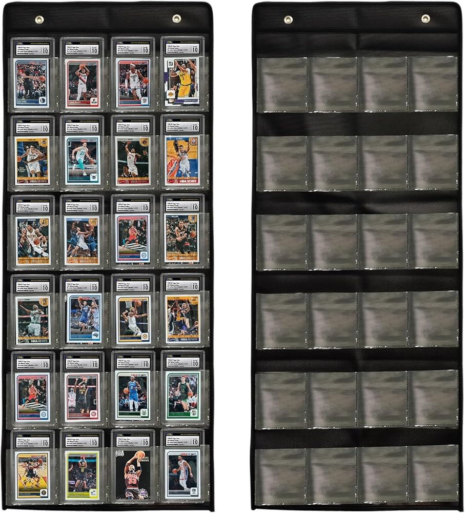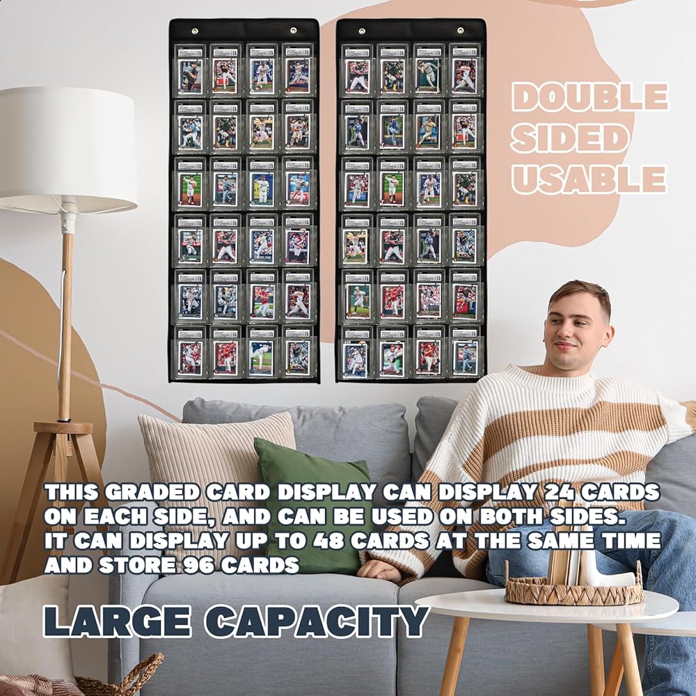 This Psa trading card case has 48 clear pockets, cards display bag Measures 37.8" * 15.75", grid measures 4" * 3.75", and you will get 2pcs, there are a total of 96 grids, which could hold much your collectible cards