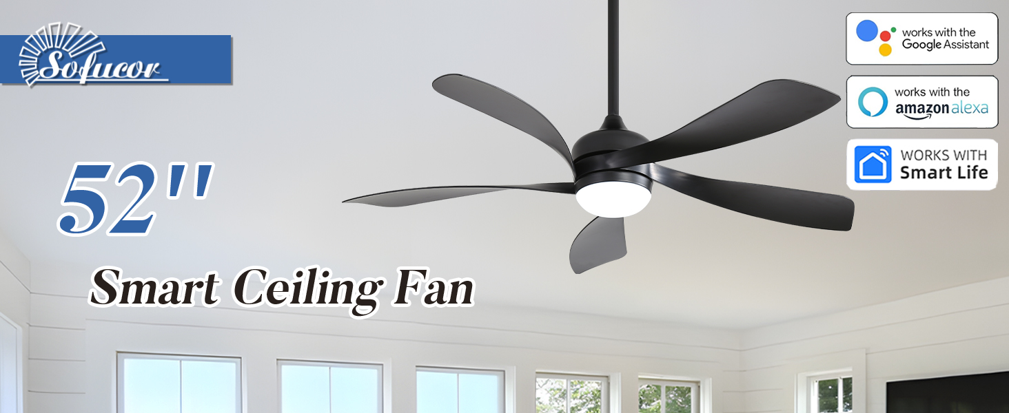 Voice & App & Remote Control: Sofucor black ceiling fan with light can be controlled in 3 ways. LED ceiling fan can be easily adjusted anytime and anywhere by mobile phone. Connect to Google Assistant/Alexa, you can free your hands with voice commands