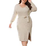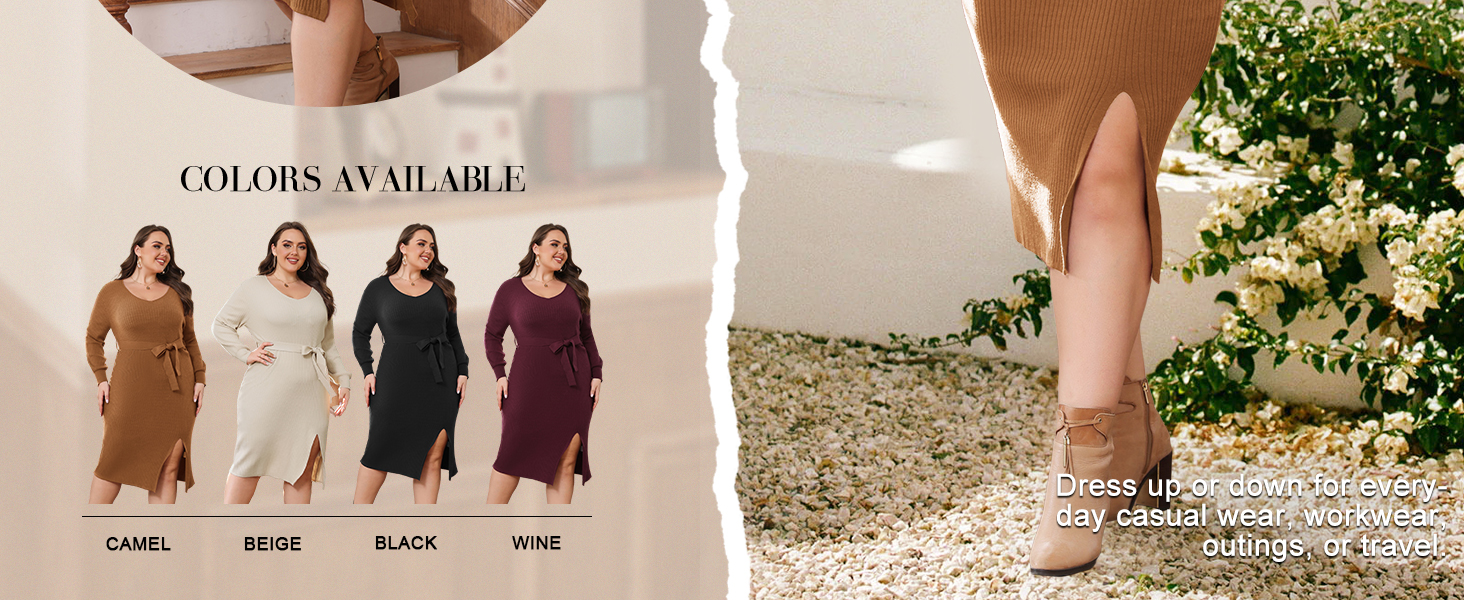【Cozy Texture, Soft Knit Material】: Made from a soft and cozy knit material, this plus size knit dress offers both comfort and style, keeping you warm and fashionable throughout the fall, winter and spring.