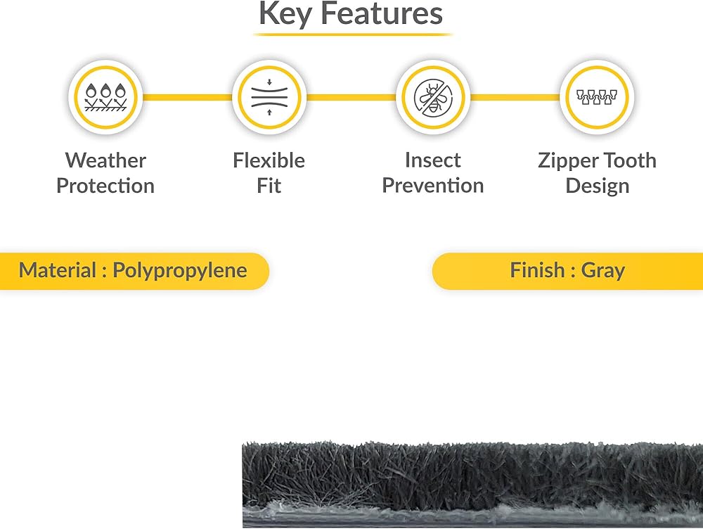 Brixwell Zipper Pile Weatherstrip - 100' Roll, 0.200" Pile Height, Gray, Zipper Weatherization Seal for Windows & Doors, Weatherstrip Replacement, Door Weather Seal