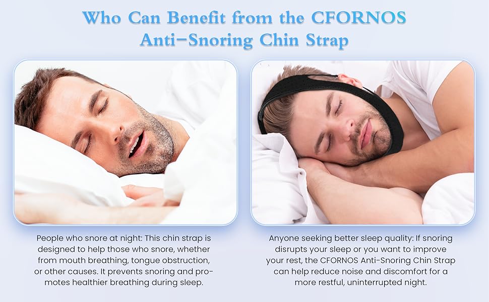 Adjustable Fit for Men & Women:The adjustable straps allow you to customize the fit to your unique head size, ensuring the chin strap stays securely in place all night long. No more worrying about straps slipping or discomfort—experience a snug yet comfortable fit that supports your jaw and reduces snoring.