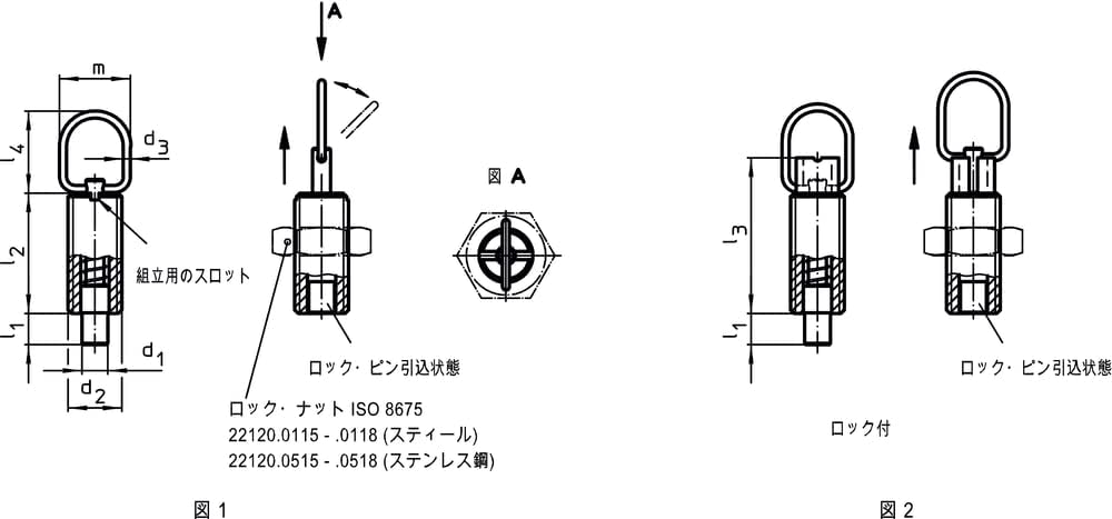 22120.1342 Locking Bolt, with Pull Ring/with Locking Mechanism, D1 = 5 mm, D2 = M10 x 1, Steel in Kuwait 22120.1342 Locking Bolt, with Pull Ring/with Locking Mechanism, D1 = 5 mm, D2 = M10 x 1, Steel in Kuwait