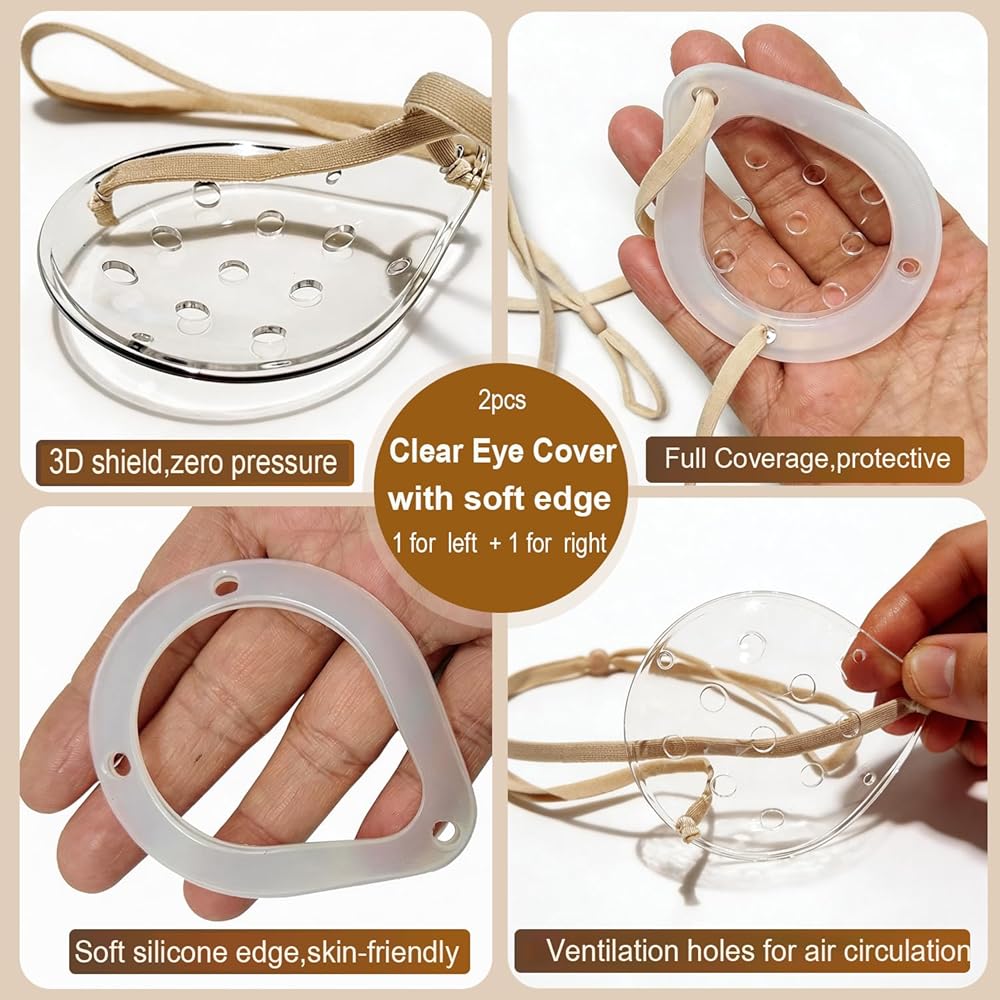 Breathability for Better Recovery: The plastic eye cover has a slight curve for comfort, ventilation holes for airflow,doesn't put any pressure on the eye,offering protection from bumps,rubbing,or accidental contact.