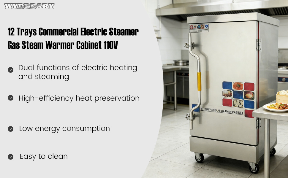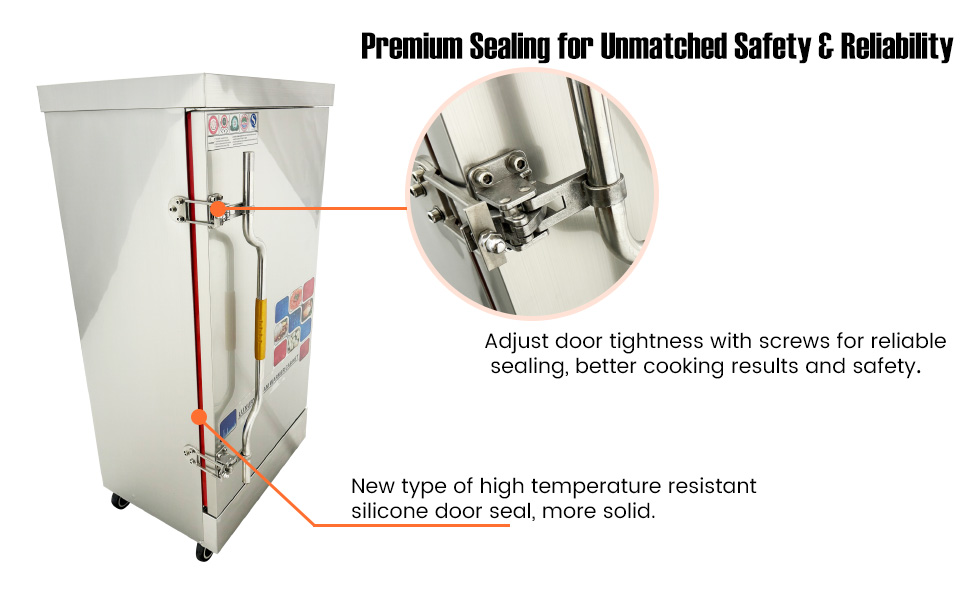 【Mobility & Stability】Equipped with four anti-skid, wear-resistant casters, this steamer is easy to move around your kitchen and stays firmly in place during use. Perfect for any kitchen setup!