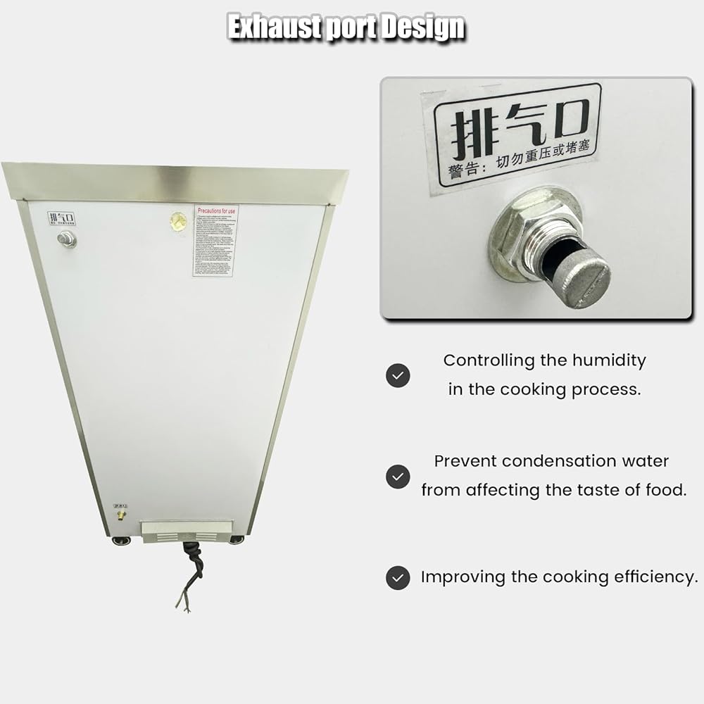 【Automatic Water Inlet System】 Our steamer features an automatic water adding function that maintains continuous heating, ensuring a steady supply of steam. This not only saves you time and effort but also guarantees perfectly cooked meals every time.