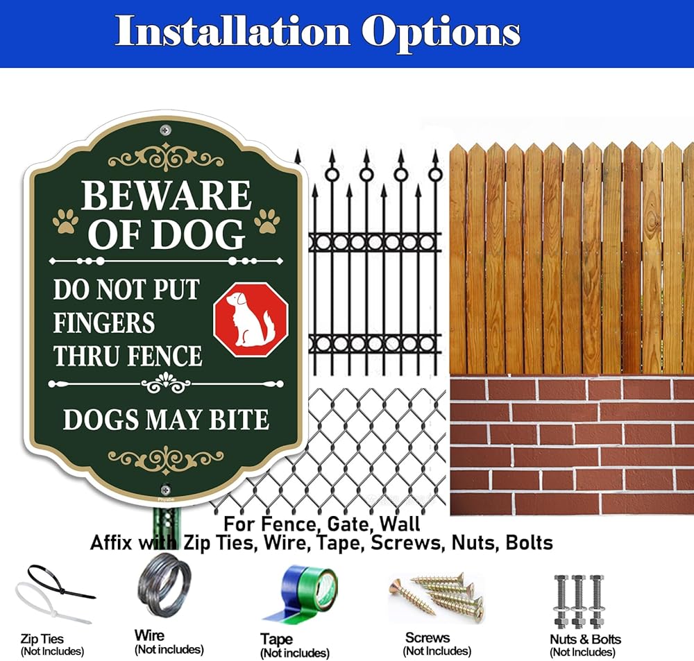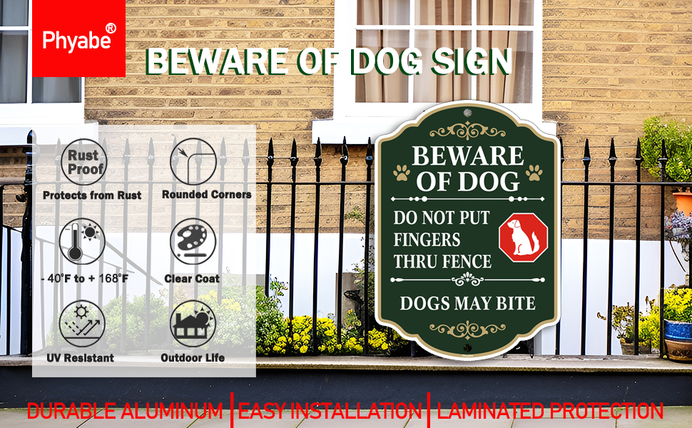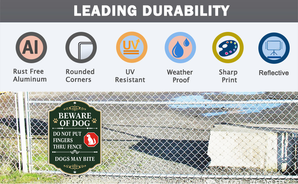 HIGH QUALITY: Beware of Dog Signs are 10 x 7 inches and made from 100% rust free strong aluminum that easily lasts many years outside.