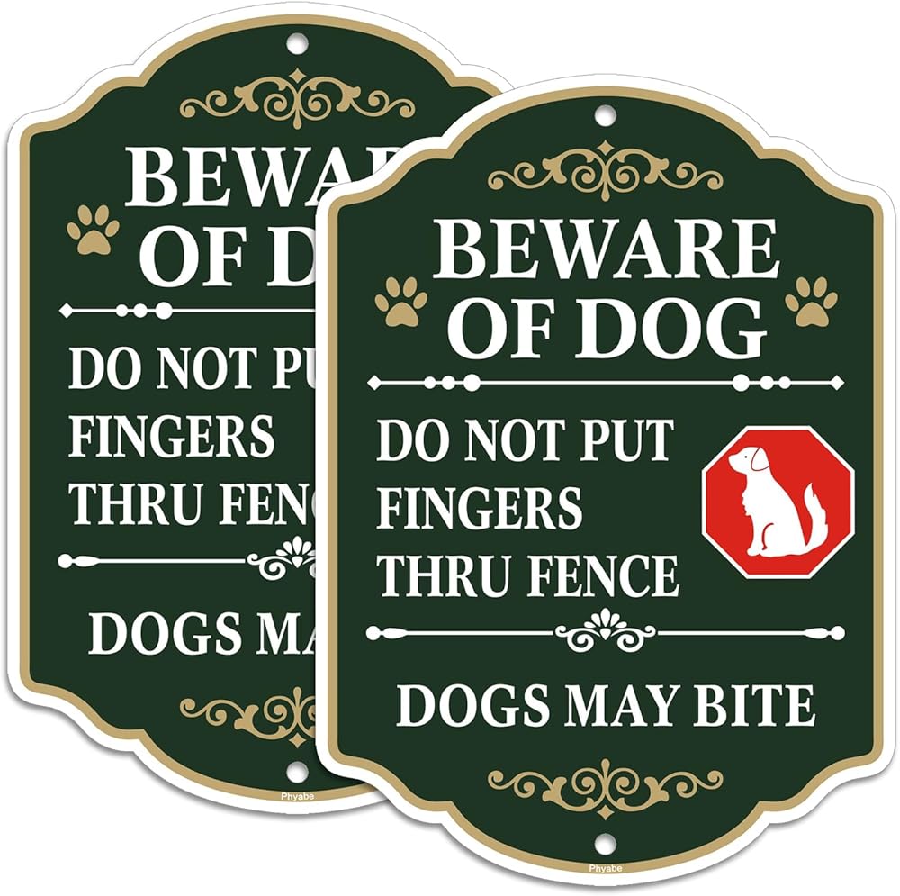 2 Pack Beware of Dog Sign, Do Not Put Fingers Thru Fence, 10 x 7 inch Rust Free Aluminum Sign, Weather Resistant, Waterproof, Durable Ink, Easy to Install