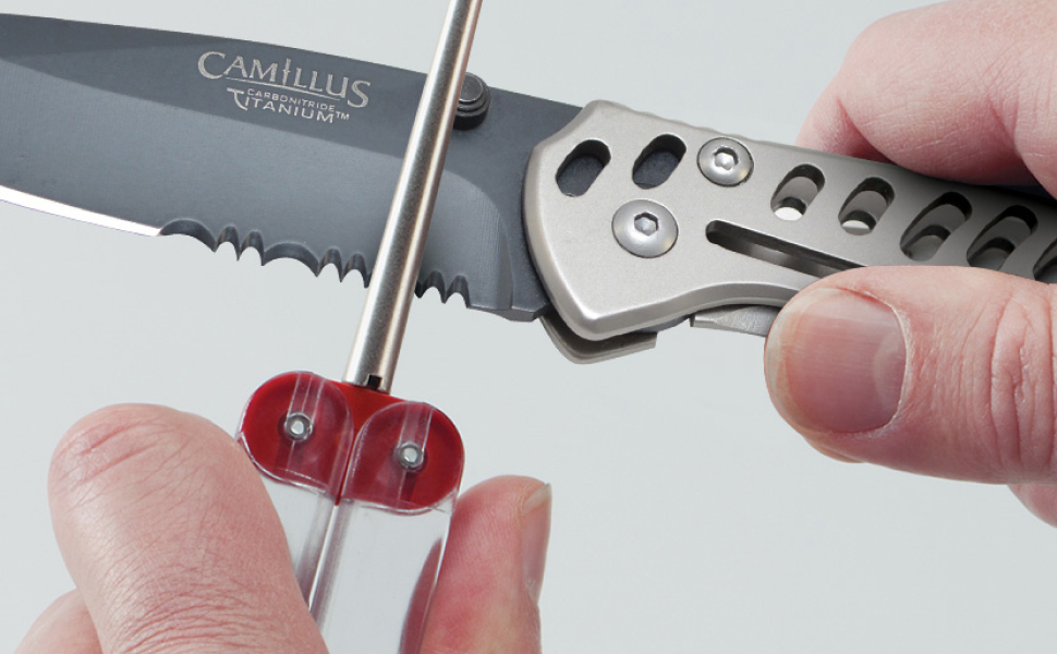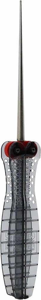 One tool for many tasks--an excellent value for home, shop and recreational use. The Diafold Serrated Knife Sharpener not only maintains serrated edges, but also serves as a mini-steel, gut hook sharpener and conical file. 1/16" to 1/4" taper. Fine diamond (25 micron / 600 mesh) for a razor sharp edge. Convenient size: 9 1/2" open. 5" closed. Folding plastic handles protect sharpener when not in use. Sharpens in a fraction of the time required by conventional stones. No messy oils needed--sharpen dry or with water. Durable construction will provide years of consistent performance and reliable service For proper tool maintenance, Woodworkers, chefs and other professionals rely on the superior quality and versatility of DMT products. Made in USA.