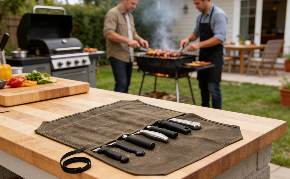 💖Travel-Friendly Chef Knives Storage Bag: Conveniently and Functional Portability to carry your knives with ease and safety when going to work, camping, or barbequing.