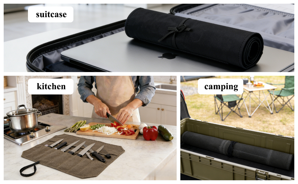 💖Unrolled Measurements: 22" wide x 16.9" can holds knives up to 16.9" in length. Design with canvas cord which allows convenience and portability to carry your knives with ease and safety when going to work, culinary school, camping, or barbequing.