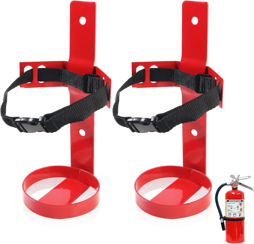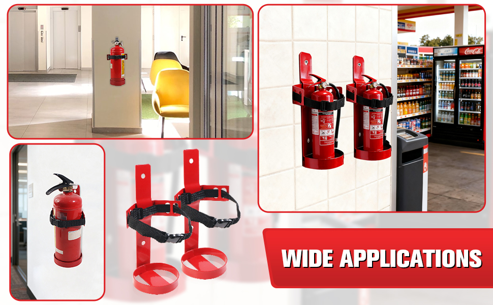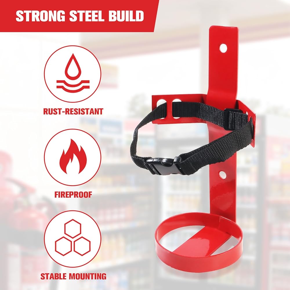 Adjustable Quick-Release Straps: The fire extinguisher bracket with quick release nylon straps with adjustable elasticity, allowing you to flexibly adjust them for a snug fit. The quick-release buckle design allows easy insertion and removal of the fire extinguisher