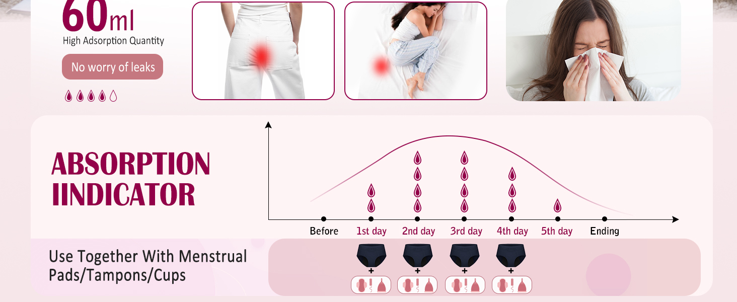 Reliable Partner for Every Life Stage: From the first period to postpartum recovery and beyond, these Leak-proof panties are designed to support every woman's journey. They are an essential companion for new moms managing postpartum bleeding or C-section recovery, offering gentle support without irritating sensitive areas. For those dealing with light bladder leaks or elder incontinence, the discreet design provides dignity and security without the bulk of disposables