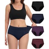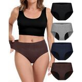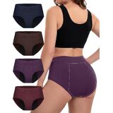 "Period Underwear for Women High Waisted Leak-Proof Postpartum Menstrual Panties 4-Pack Multi-Layer Leakproof Protection: These period underwear for women have a 4-layer leakproof crotch, helping prevent leaks for daily and nighttime. The back waterproof crotch of these period underwear reaches the waistband, with a full-coverage hip design that provides added security Suitable for All Period Phases: These high-waisted period underwear for women can be used alone during light flow, and paired with tampons/sanitary pads during heavy flow. These menstrual underwears for women adapt to your needs at any stage, making them a versatile essential for every phase of your period High-Waisted Design: The widened waistband of these leak-proof underwear for women wraps around the abdomen and waist, providing abdominal support while helping contain leaks. These period panties featuring a tailored cut fit the body's curves, and prevent rolling or riding during movement Suitable for Various Scenarios: These period panties for women are also ideal for postpartum use after c-section and light incontinence. These women's period underwear help manage light bladder leaks or stains