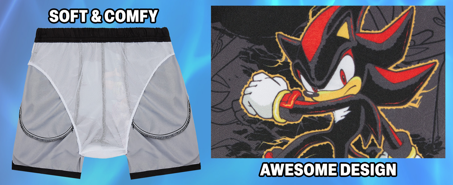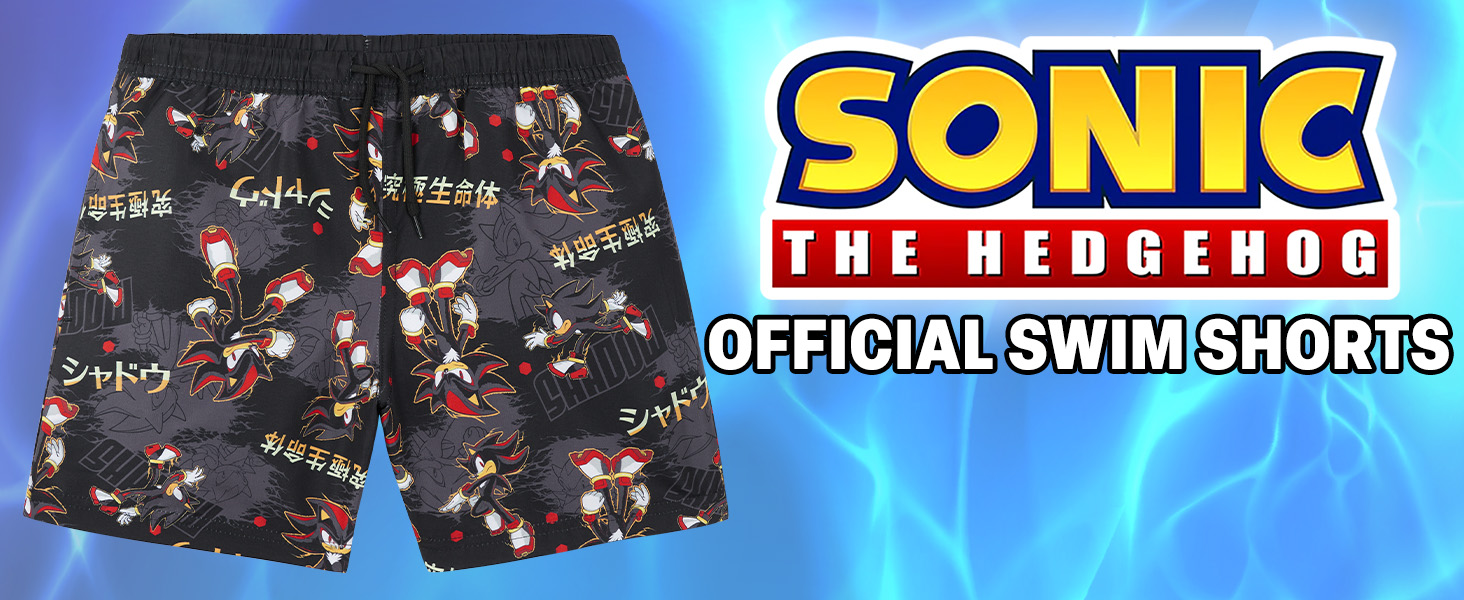 Sonic Swim Suits: These Sonic gamer swim shorts featuring Shadow the Hedgehog are made for kids and tweens aged 5–12, featuring UPF 50+ fabric that helps shield skin during sunny beach days and pool fun, while lightweight polyester keeps this boys bathing suit and board shorts feeling comfortable