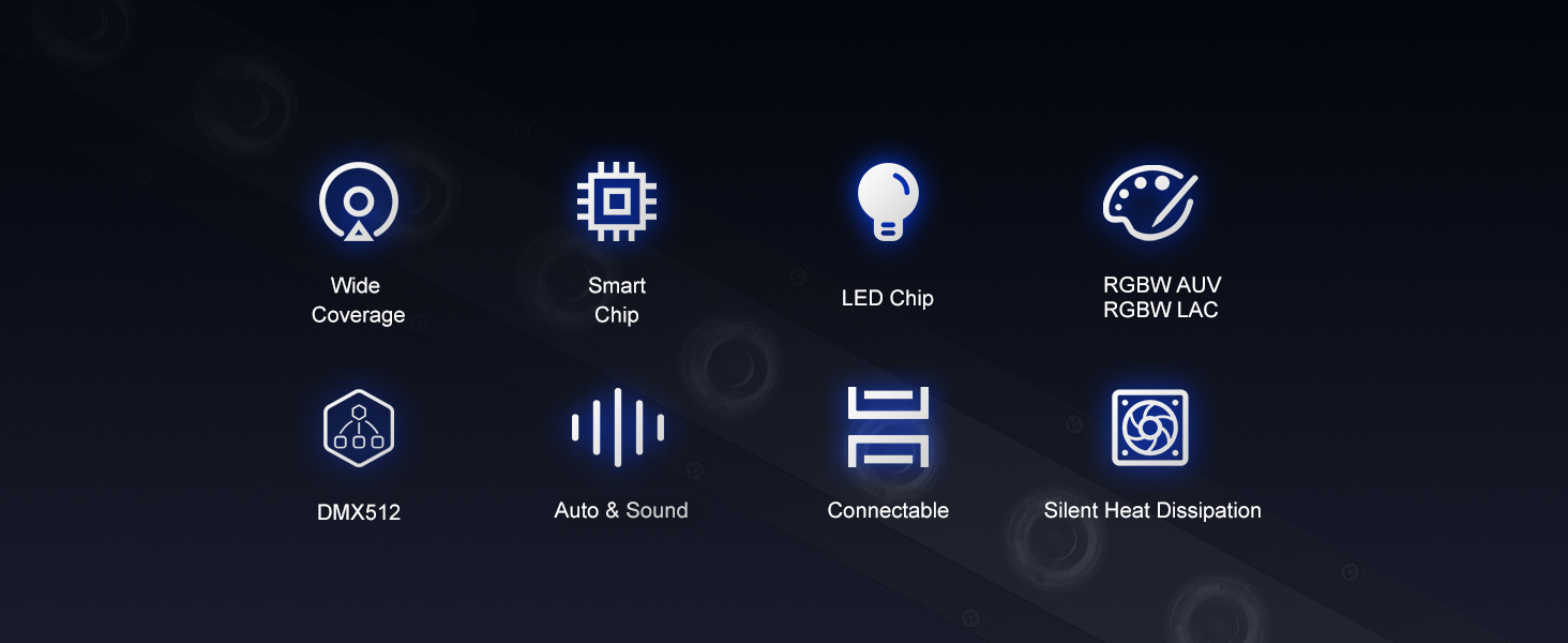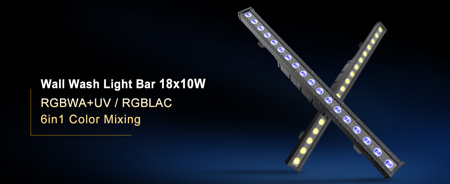 "Newly developed, freely splicable wash wall light featuring 18x10W high-brightness LEDs. It supports linear color adjustment and RGBWA UV (Red, Green, Blue, White, Amber, UV) mixing, delivering realistic stage scene effects and a strong visual impact."