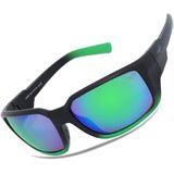 These fishing sunglasses feature polarized lenses with a special coating that enhances scratch resistance and acts as a barrier against water, oil, and sweat, making cleaning effortless.