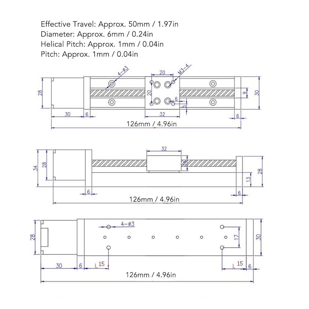 Precise Parameters for Strong Adaptability: Effective travel 50mm, step angle 1.8 degrees, guide rod diameter 6mm, pitch 1mm (moves 1mm per circle), positioning accuracy ±0.1mm. Precise and standardized parameters, suitable for X, Y, Z axes use, providing reliable parameter guarantee for precision transmission.