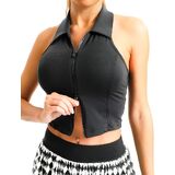 Fashion Collared Halter Design The classic collar paired with a halter sleeveless cut combines sports functionality with retro American fashion. The backless design enhances the stylish vibe, making it perfect for both daily outings and fitness activities.