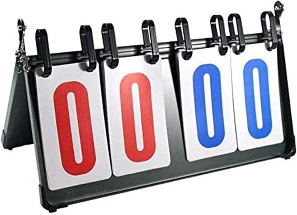 This is the professional scoreboard sized 15x19 inch (37x22.5 cm). The board is made of stainless steel, and the score card is made of solid elastic plastic piece. Each score card has the size of 3x6 inch (8x14.3cm). Each score card number has the sequence from 0 to 9, in two colors of red and blue. There is lock between the two stainless boards, making it solid to stand. The scoreboard can be used in different occasions for various sports competition, where scoring is needed.