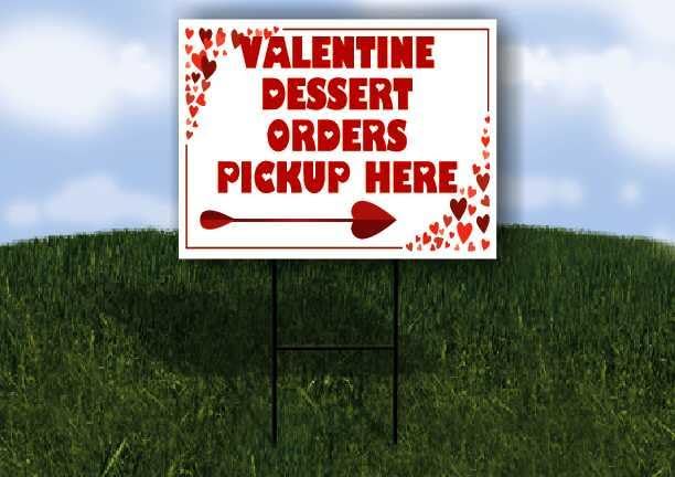 Valentine Dessert Orders Pickup Here Red Frame With Hearts Up Arrows A-Frame Single Sided 23x23 in. sign in Kuwait
