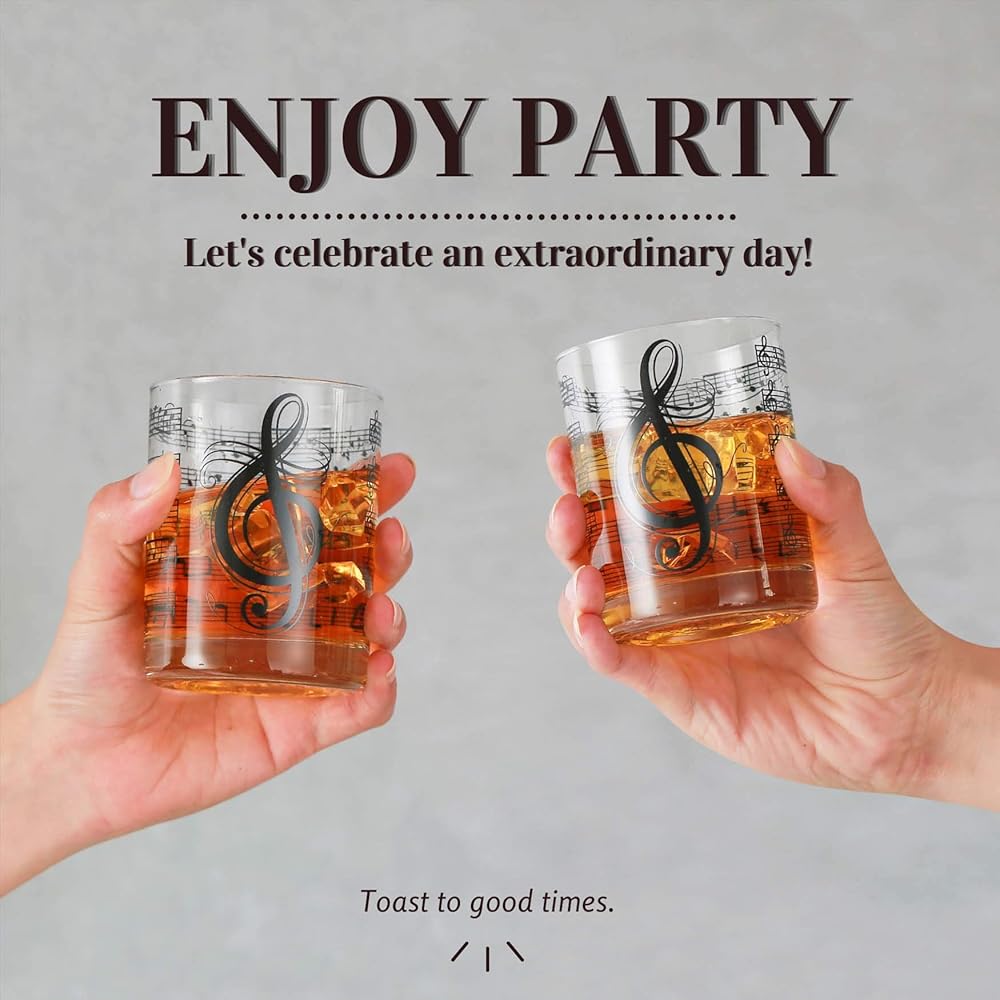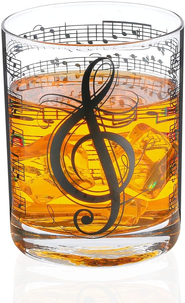 Unique Design - The classic blonding music notes and black sheet music around the whiskey glass add luxury to this novelty whiskey glass.