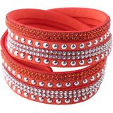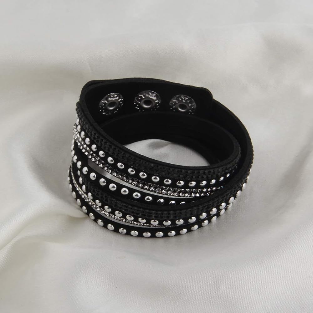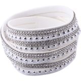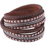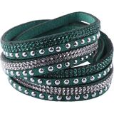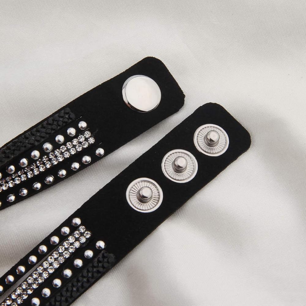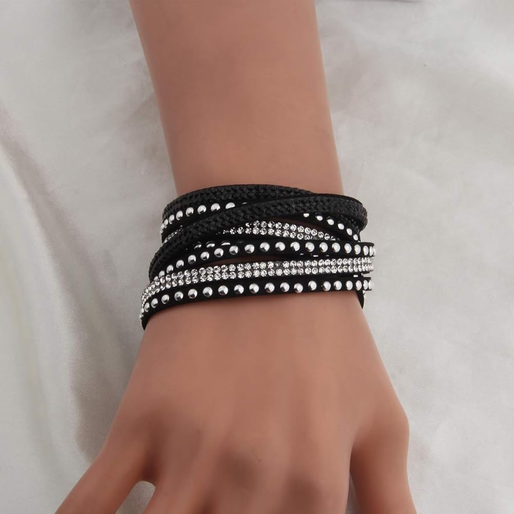The slit leather and sparkling crystals create the illusion of several bracelets being worn together. Light and comfortable to wear, and great for stacking!