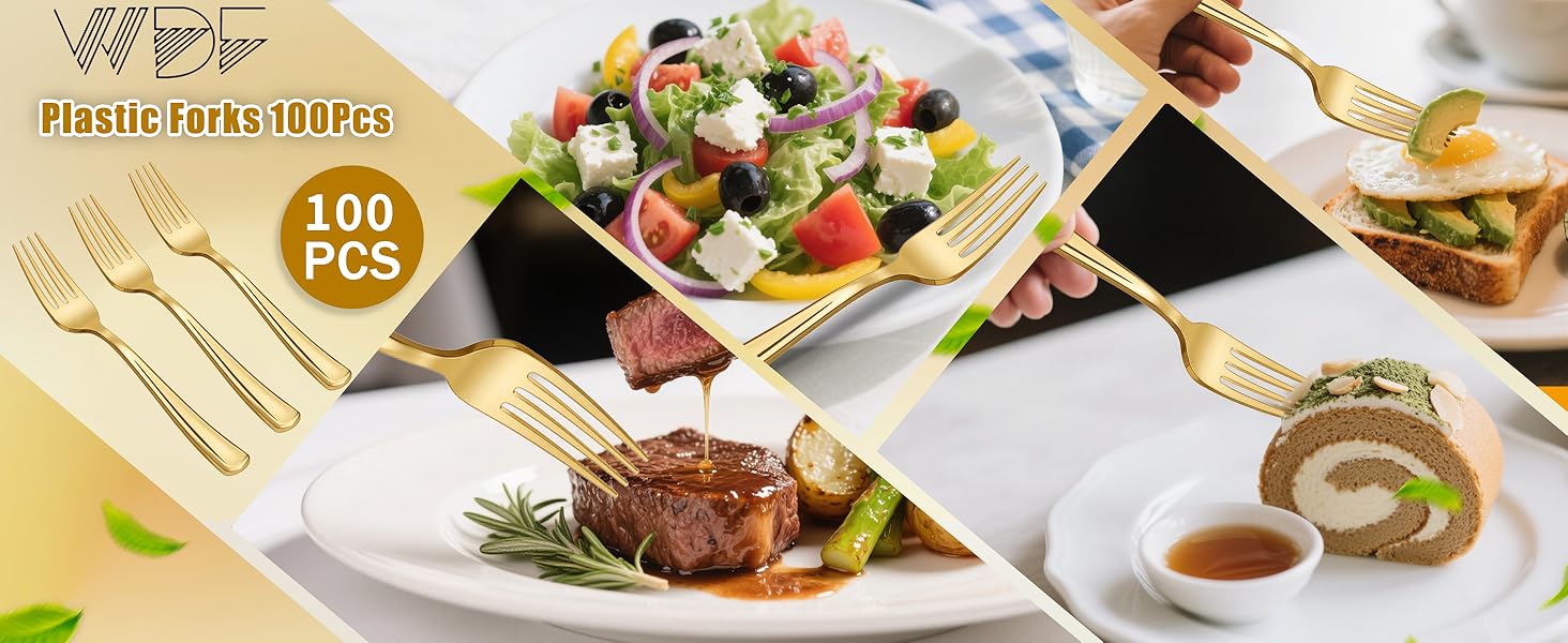 BRIGHT COLOR: WDF gold plastic forks will make people feel good with its exciting look. These gold forks disposable are coloured using a special technique that are not only bright but also does not fade. Pairing these gold plastic silverware with your carefully prepared food