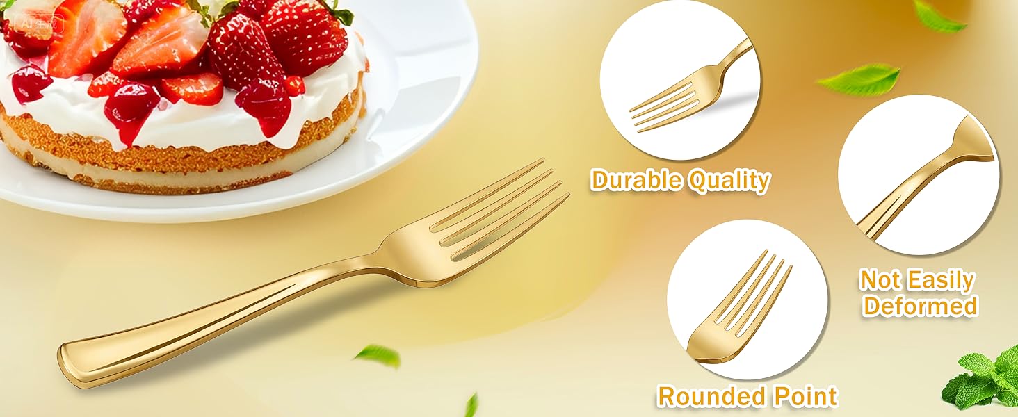 STURDY AND DURABLE: These gold forks These forks have a sophisticated look while being sturdy and durable, you can use them to enjoy food at parties without worrying about breaking
