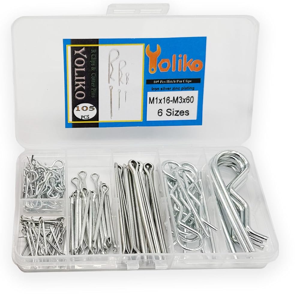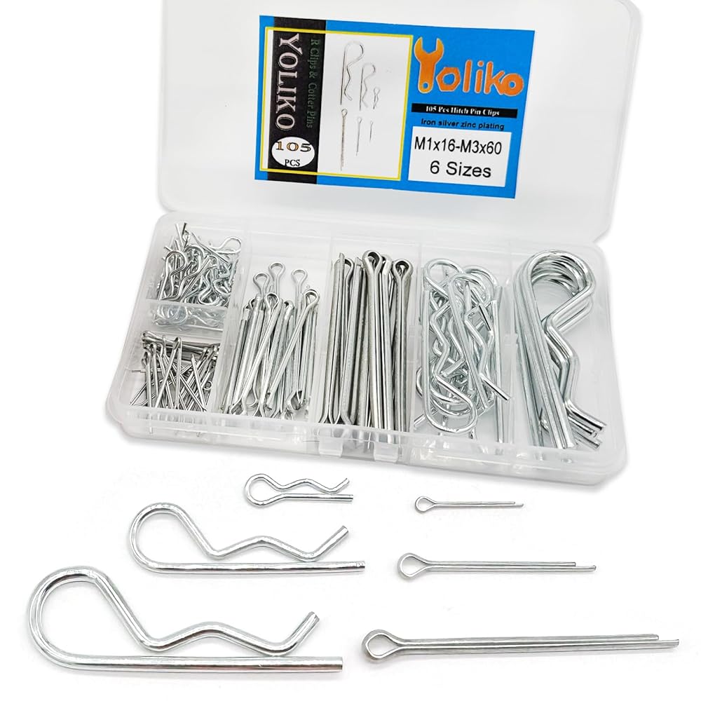 105 Pcs R Pins and Cotter Pins Assortment kit-6 Sizes Retaining Pin Split Pin Tractor Hairpin Spring Clip Used for Hitch Pin Lock System Dolly/Trailer/Hand Truck Pin Replacement