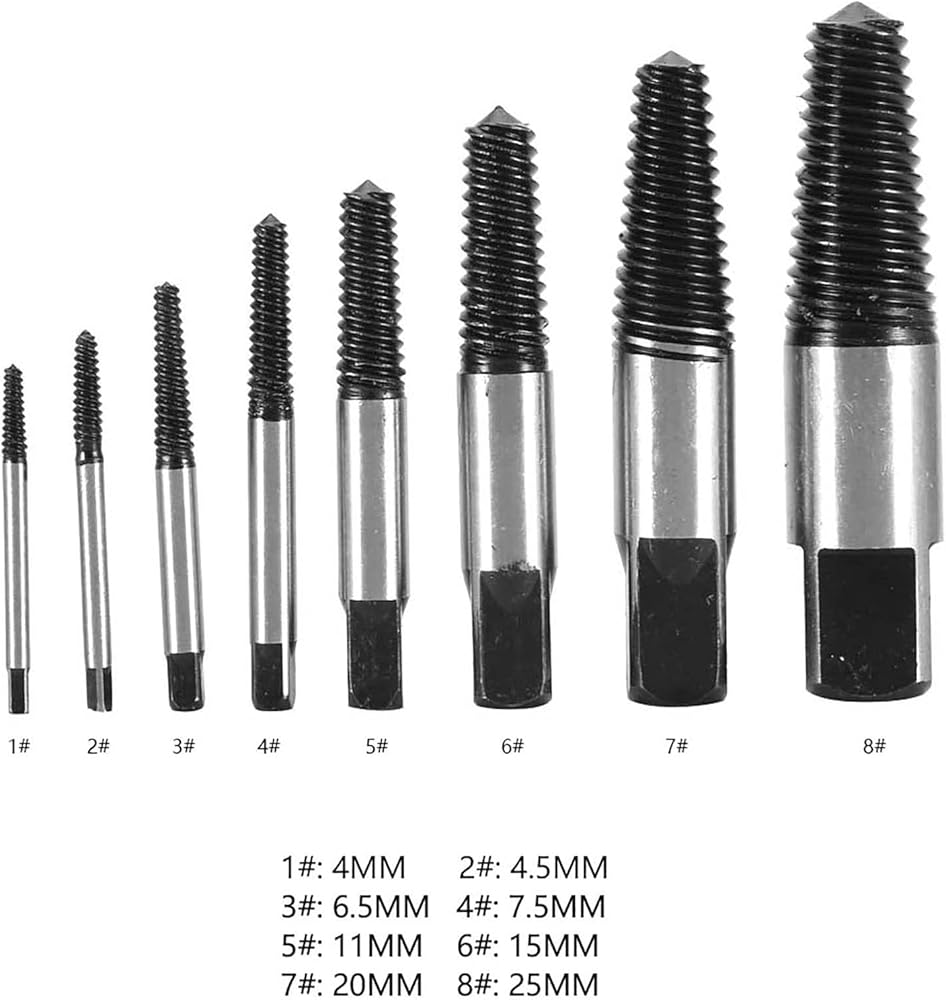 [EFFORTLESS BROKEN SCREW REMOVAL] This extractor set effortlessly removes broken or rusty screws, bolts, and water pipes with precision. The reverse spiral design bites into damaged fasteners, allowing quick extraction without damaging surrounding materials. for tackling stubborn hardware in plumbing, automotive, and construction projects.