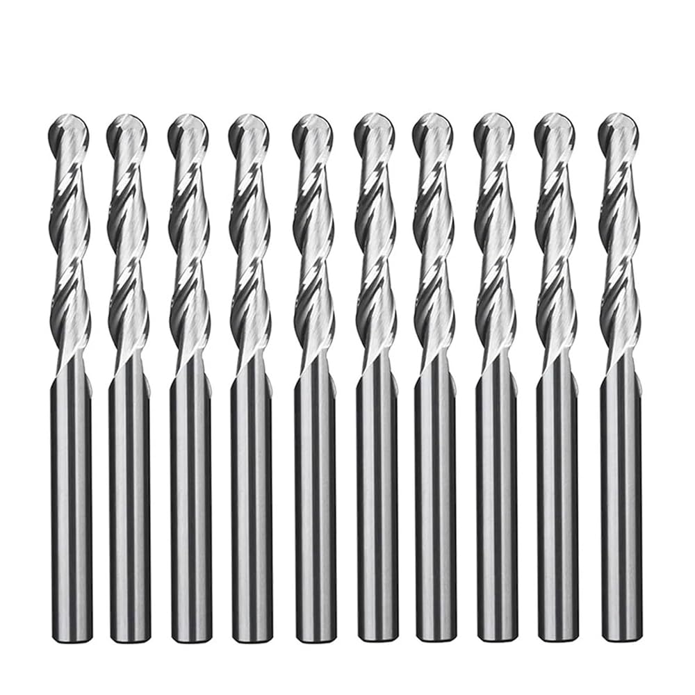 10pcs 3.175mm Shank Ball Nose End Mill features an intricate design that ensures precise milling and carving for a variety of materials, making it ideal for CNC applications.