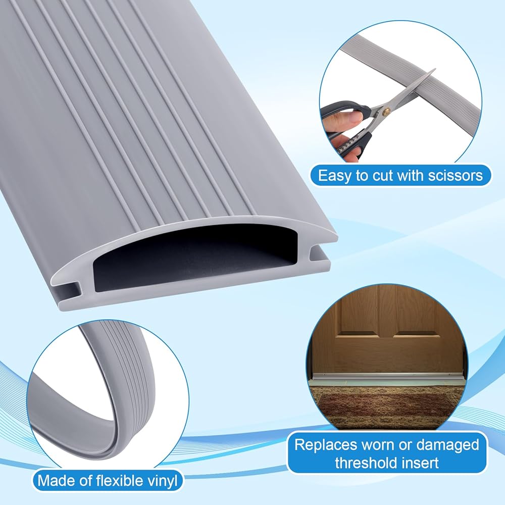 • Flexible Vinyl Construction: the door threshold strip made from high quality gray vinyl, stays soft and flexible in extreme weather, it resists cracking, shrinking, or warping over time, providing long lasting sealing performance for front doors, back doors, and patio entrances