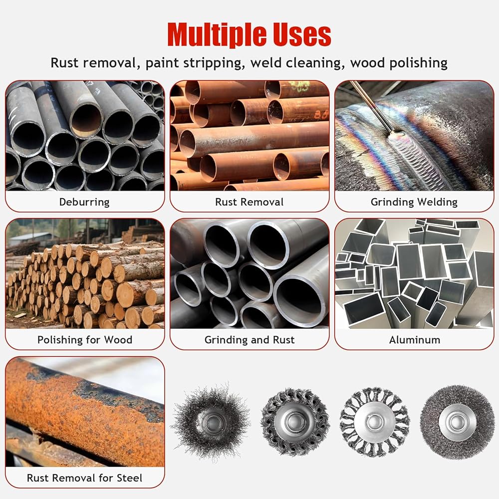 ULTRA-SAFE & STABLE PERFORMANCE: Double-reinforced steel plate system eliminates wire breakage and fly-off risks during aggressive grinding. Balanced structural design reduces vibration at maximum RPM, maintaining stability even for prolonged use. Premium carbon steel wires resist snapping, ensuring safe operation for both light and heavy-duty tasks.