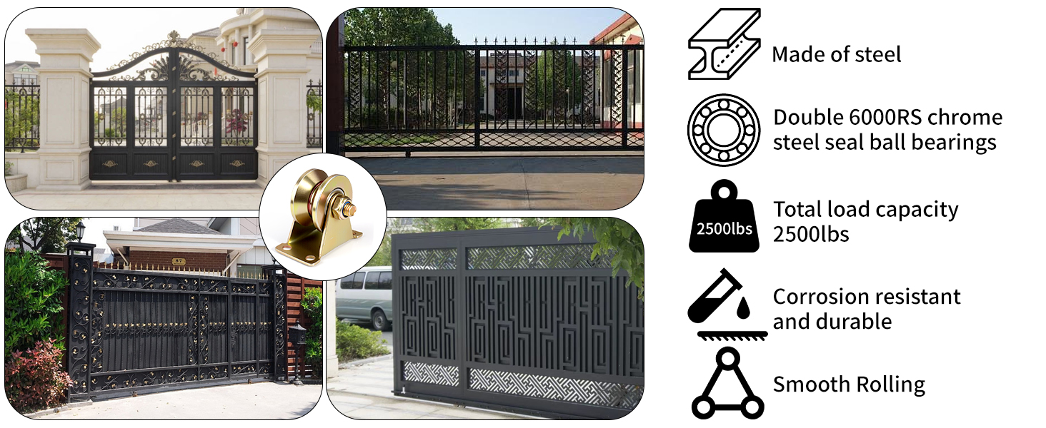 Wide Range:Fit to inverted 90 degree angle v-track, heavy duty rolling door, sliding gate, industrial machines rail, wire rope rail device, containers racks, sawmill, pet fence and more.