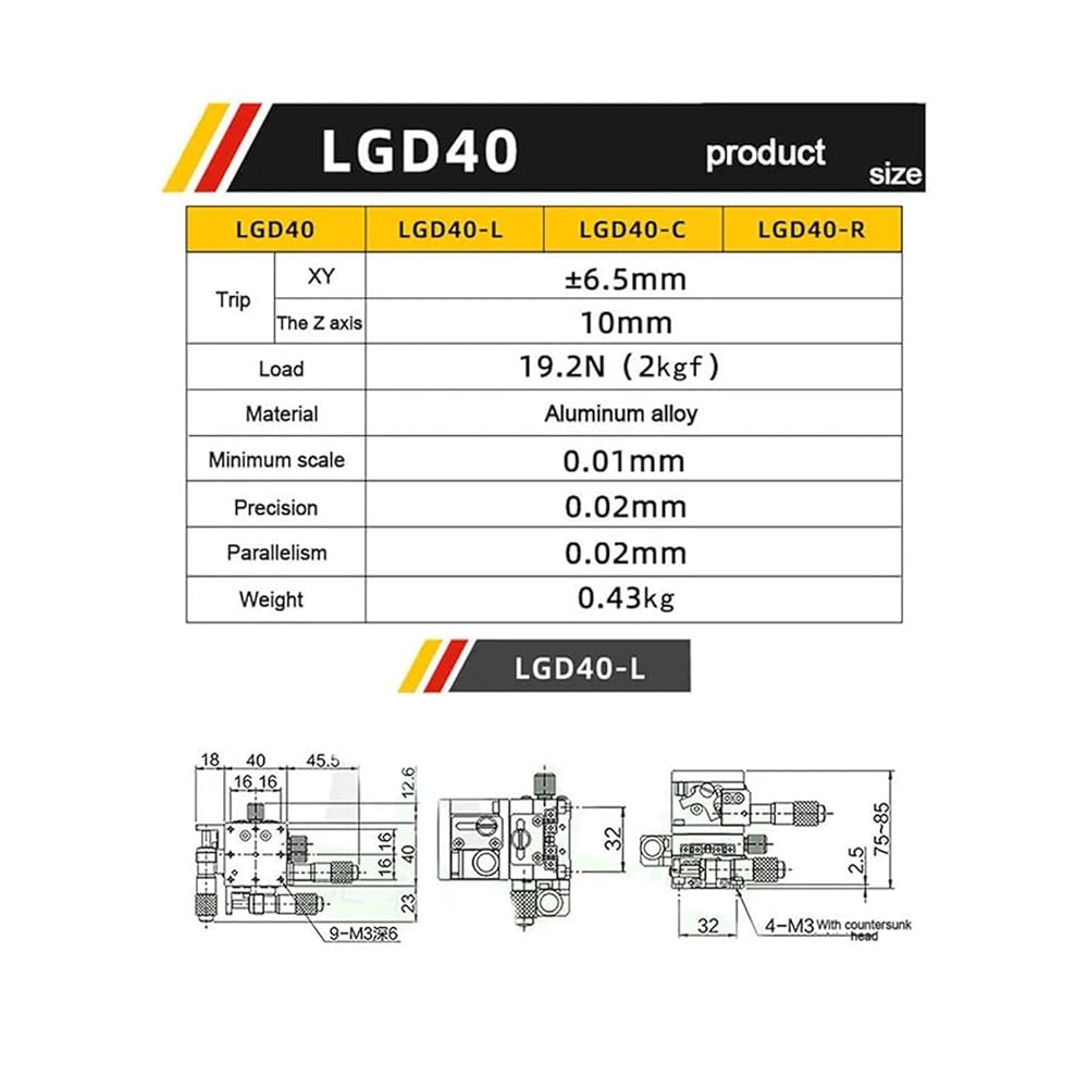XYZ axis Manual Precision fine-Tuning Lifting Aluminum Alloy Mobile Slide LGD40